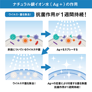 「ナチュラル銀イオン水」は、抗菌成分「銀イオン」を含んだ水です。