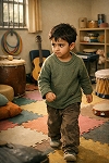 「ハリドは緊張しているようだ。檻に入れられた動物のように、5歳のハリドは今日1時間の音楽療法を受ける予定の部屋をうろうろ歩き回っている。ベルリン=ヴィルマースドルフにある、明るく飾られた部屋だ。ズニガ・アルバレスがドラムスティックとタンバリンを差し出すと、ハリドはスティックを口に入れ、しゃぶってから、何気なく放り投げてしまう。この5歳のハリドの認知能力、言語能力、そして情緒の発達は著しく遅れている」と、センターの医療責任者であるカトリン・クロッパー氏は説明する。「彼は演奏もせず、話すこともせず、話しかけられてもほとんど反応しない」。クロッパー氏とチームは、ハリドは生まれつき健康で、後天的に障害を負ったと確信している。その原因は、幼少期の過剰なメディア消費にある。